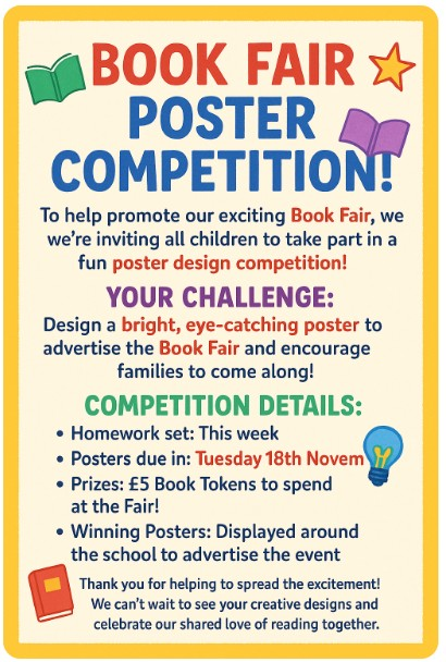The Book Fair is a fantastic opportunity to help raise money for our school. In the past, this money has been used to purchase whole-class sets of texts for guided reading, new dictionaries and thesauruses, and vocabulary-rich texts for our Talk Through Stories lessons.